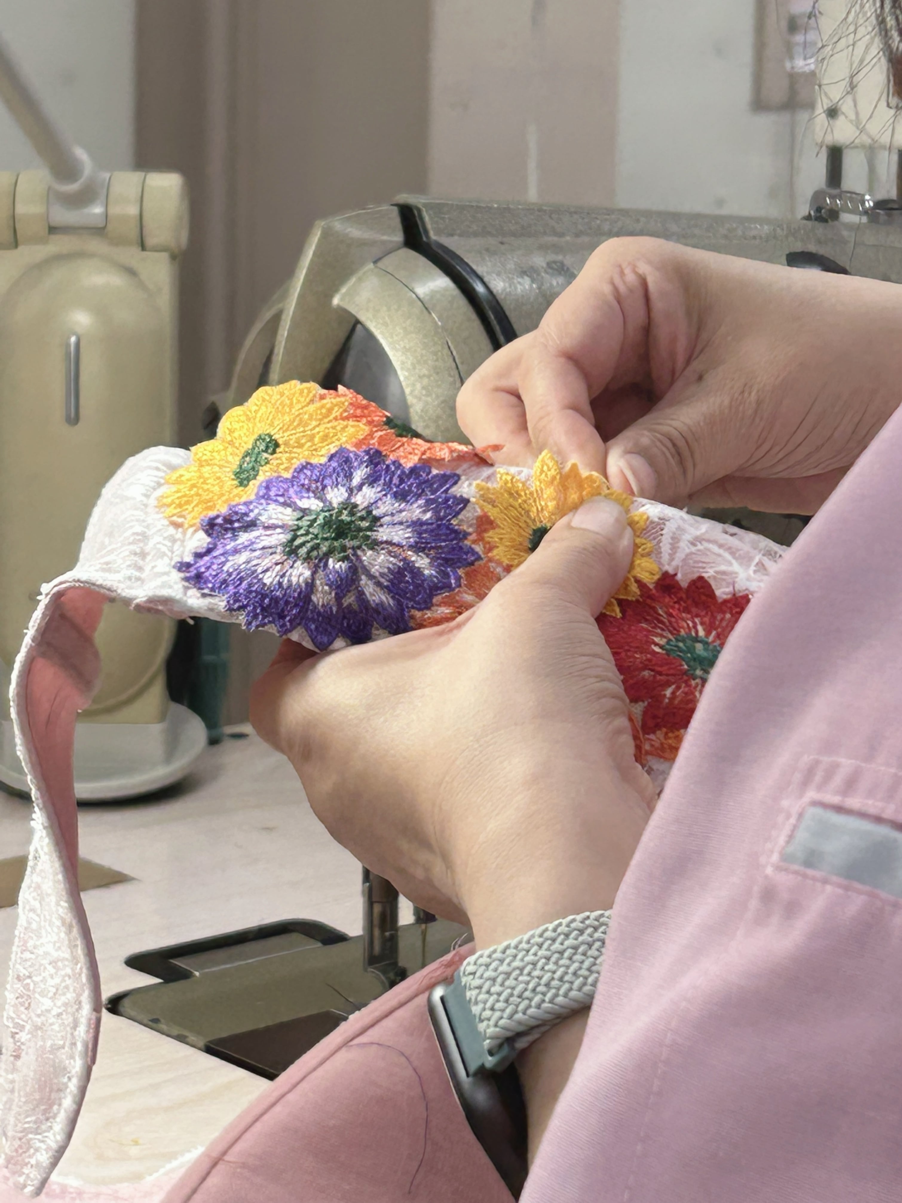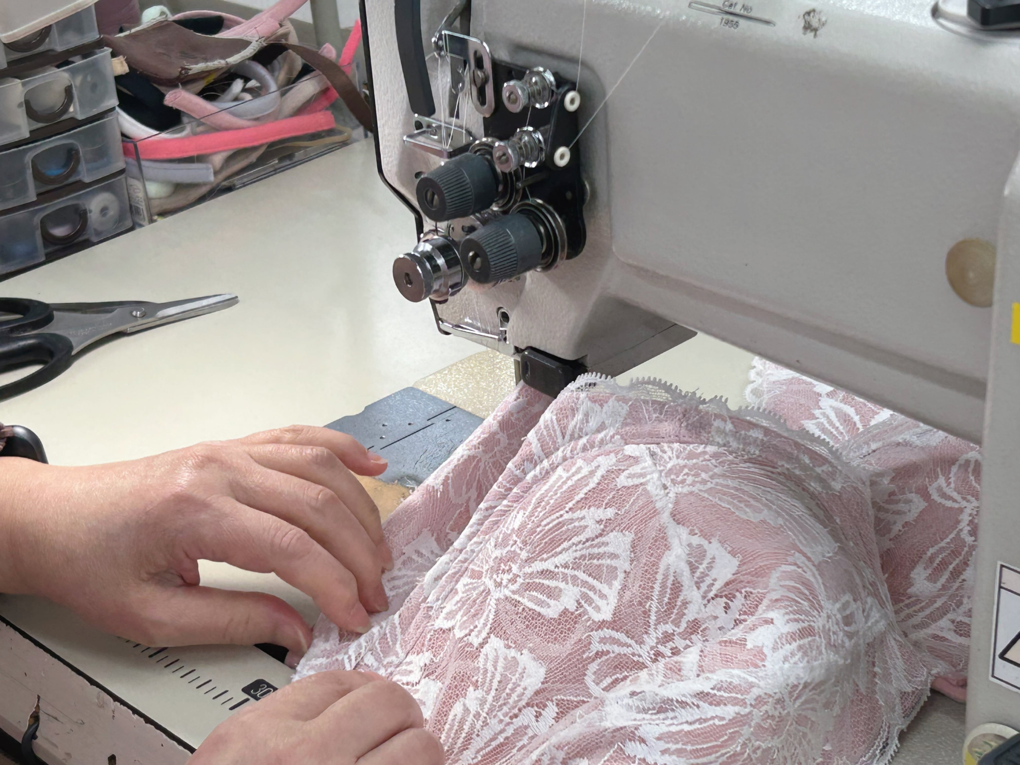 ガーベラモチーフのアップリケ付きブラジャー。唯一無二のブラジャー、自分が製作したい下着がやっと完成。心華やぐデザインとピンクの淡いカラーバランス、女性の大好きを詰め込みました。thinkmine...のInstagramを初期からご存知の方は、アップリケの進化にお気づきかもしれません。配色バランスを変え、大人のアップリケとして帰ってきました。レースの女王と言われる【リバーレース】を贅沢に使用し、軽やかな素材感が心地よく、普段使いから特別な日まで幅広くご利用いただけます。カップの形状やホック位置、サイドボーンの角度等、細部に配慮し、着用感は【1枚の布でバストを包み込まれている、今までにない感覚】。ゴムフリーならではの、窮屈さ無しでバストを美しくメイクしてくれる、長年の歳月をかけグラマーさんの為に作られた、ブラジャーになります。★写真サイズI90★ ※アップリケの取り付け糸がカップ裏に出ています。縫製する際にどうしても発生します。写真5、6枚目に載せておりますのでご確認の上、気になる方はご遠慮ください。 ※使用しているリバーレースは、アイラッシュと言われるレースの端にフリンジやまつ毛のような糸がありますが、糸のほつれ等では無く、リバーレース機を使用して編んでいく工程で出来たものです。写真にてご確認をお願いいたします。 ■カラー/サイズ/バリエーション ・カラー: ピンク ・サイズ: E65~J95 ストラップ18mm。パット無し。 ※自社製品は、補正効果がある為、通常採寸サイズより1カップ大きめを選択ください。 アンダーサイズは採寸通りを選択ください。詳細は、写真8枚目のサイズ表のご確認をお願いいたします。 ■素材/製造国 ・素材: ポリエステル、ポリウレタン、綿 ・製造国: 日本 ■お手入れ/取り扱い注意事項 ・手洗いを推奨します。 ・漂白剤の使用は避けてください。 ・直射日光の当たる場所での乾燥はお控えください。 ■発送・注文に関する情報や注意事項 ・ご注文から発送までの目安は、約1.5カ月です。1着ずつ丁寧に手作業にて縫製していく為、お時間いただくことをご了承ください。 ・返品について 当店では、お客様都合による返品は受け付けておりません。 商品の製造、発送には万全の注意を払っておりますが、商品不良の場合や、輸送中のトラブルによる破損、汚損に限り、往復送料等を弊社負担にて同一商品と交換させていただきます。 ※商品到着後、8日以内にご連絡をお願いいたします。また、お客様が汚損、破損、使用された商品に関しては、交換対応できませんので、ご了承ください。 ・サイズ交換について 事前に公式LINE等でご連絡いただいたお客様に限り、1回のみ往復送料自社負担で対応いたします。お時間を再度いただくようになりますが、ご了承いただきますようお願いいたします。 ※商品到着後、8日以内にご連絡をお願いいたします。また、お客様が汚損、破損、使用された商品に関しては、交換対応できませんので、ご了承ください。 ■その他の情報や注意事項 ・サイズ選びに不明点がある場合は、お問い合わせください。 ・価格には消費税が含まれています。 ・海外発送は対応しておりませんので、ご了承ください。 商品に関するご質問等は、ショップのお問い合わせからお気軽にご連絡ください。あなたのライフスタイルに寄り添った素敵な下着をご体験ください。