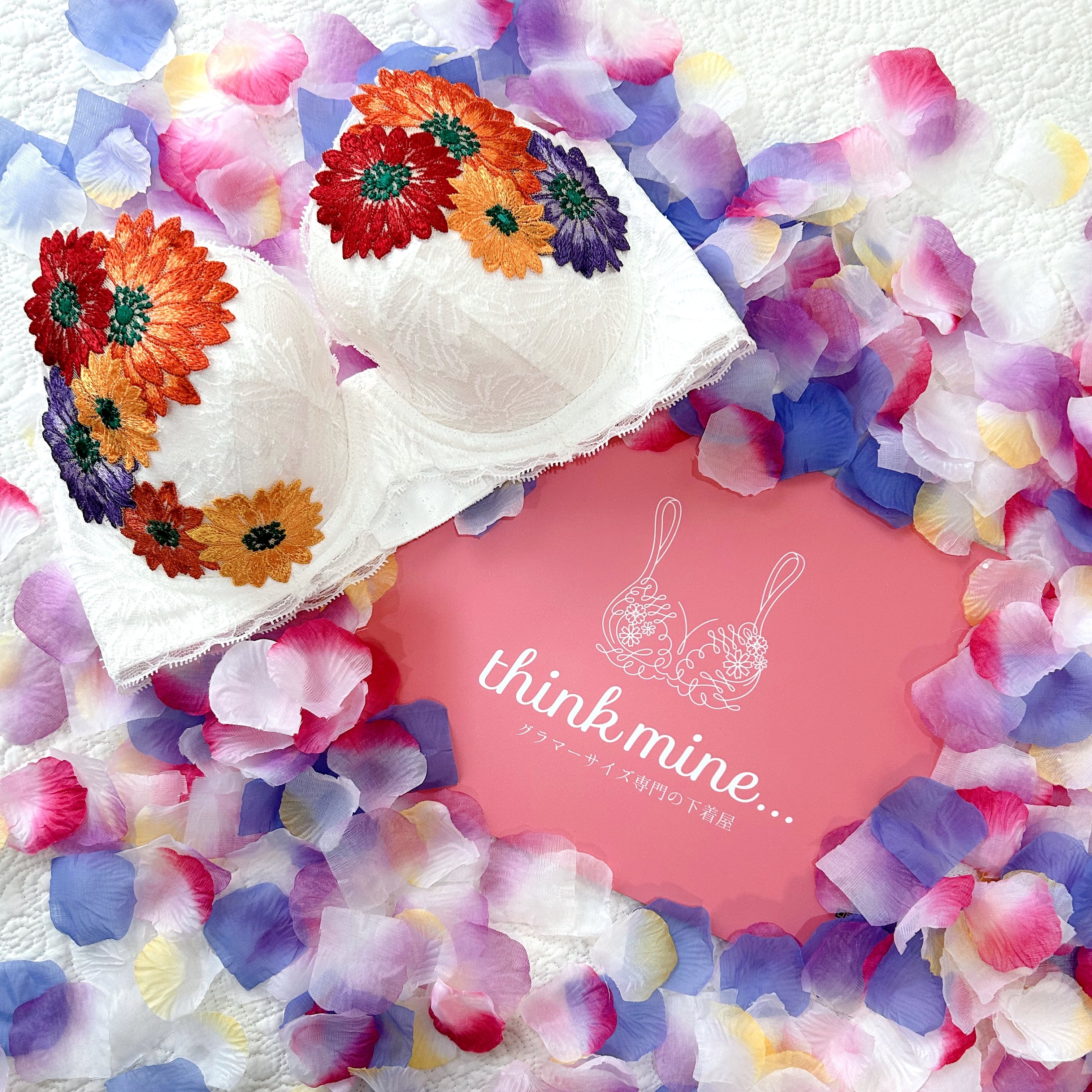 ガーベラモチーフのアップリケ付きブラジャー。唯一無二のブラジャー、自分が製作したい下着がやっと完成。ホワイトの主役はガーベラアップリケ、花の色彩を存分に楽しめる着るだけでワクワクするデザイン。個人的に1番苦労したアップリケが主役になれるのでおススメです。thinkmine...のInstagramを初期からご存知の方は、アップリケの進化にお気づきかもしれません。配色バランスを変え、大人のアップリケとして帰ってきました。レースの女王と言われる【リバーレース】を贅沢に使用し、軽やかな素材感が心地よく、普段使いから特別な日まで幅広くご利用いただけます。カップの形状やホック位置、サイドボーンの角度等、細部に配慮し、着用感は【1枚の布でバストを包み込まれている、今までにない感覚】。ゴムフリーならではの、窮屈さ無しでバストを美しくメイクしてくれる、長年の歳月をかけグラマーさんの為に作られた、ブラジャーになります。★写真サイズE70★ ※アップリケの取り付け糸がカップ裏に出ています。縫製する際にどうしても発生します。写真5、6枚目に載せておりますのでご確認の上、気になる方はご遠慮ください。 ※使用しているリバーレースは、アイラッシュと言われるレースの端にフリンジやまつ毛のような糸がありますが、糸のほつれ等では無く、リバーレース機を使用して編んでいく工程で出来たものです。写真にてご確認をお願いいたします。 ■カラー/サイズ/バリエーション ・カラー: ホワイト ・サイズ: E65~J95 ストラップ18mm。パット無し。 ※自社製品は、補正効果がある為、通常採寸サイズより1カップ大きめを選択ください。 アンダーサイズは採寸通りを選択ください。詳細は、写真8枚目のサイズ表のご確認をお願いいたします。 ■素材/製造国 ・素材: ポリエステル、ポリウレタン、綿 ・製造国: 日本 ■お手入れ/取り扱い注意事項 ・手洗いを推奨します。 ・漂白剤の使用は避けてください。 ・直射日光の当たる場所での乾燥はお控えください。 ■発送・注文に関する情報や注意事項 ・ご注文から発送までの目安は、約1.5カ月です。1着ずつ丁寧に手作業にて縫製していく為、お時間いただくことをご了承ください。 ・返品について 当店では、お客様都合による返品は受け付けておりません。 商品の製造、発送には万全の注意を払っておりますが、商品不良の場合や、輸送中のトラブルによる破損、汚損に限り、往復送料等を弊社負担にて同一商品と交換させていただきます。 ※商品到着後、8日以内にご連絡をお願いいたします。また、お客様が汚損、破損、使用された商品に関しては、交換対応できませんので、ご了承ください。 ・サイズ交換について 事前に公式LINE等でご連絡いただいたお客様に限り、1回のみ往復送料自社負担で対応いたします。お時間を再度いただくようになりますが、ご了承いただきますようお願いいたします。 ※商品到着後、8日以内にご連絡をお願いいたします。また、お客様が汚損、破損、使用された商品に関しては、交換対応できませんので、ご了承ください。 ■その他の情報や注意事項 ・サイズ選びに不明点がある場合は、お問い合わせください。 ・価格には消費税が含まれています。 ・海外発送は対応しておりませんので、ご了承ください。 商品に関するご質問等は、ショップのお問い合わせからお気軽にご連絡ください。あなたのライフスタイルに寄り添った素敵な下着をご体験ください。
