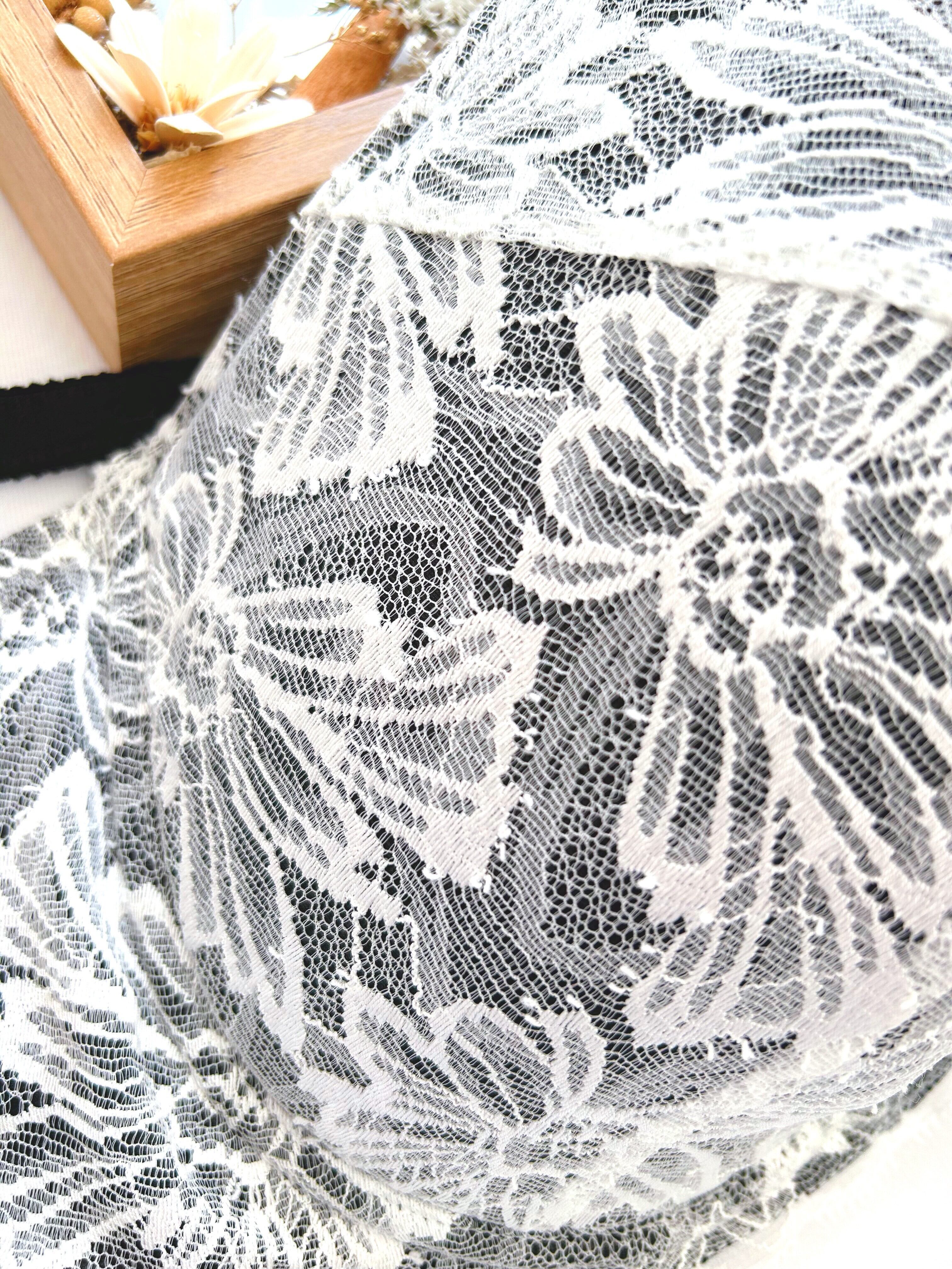 ※使用しているリバーレースは、アイラッシュと言われるレースの端にフリンジやまつ毛のような糸がありますが、糸のほつれ等では無く、リバーレース機を使用して編んでいく工程で出来たものです。写真にてご確認をお願いいたします。
