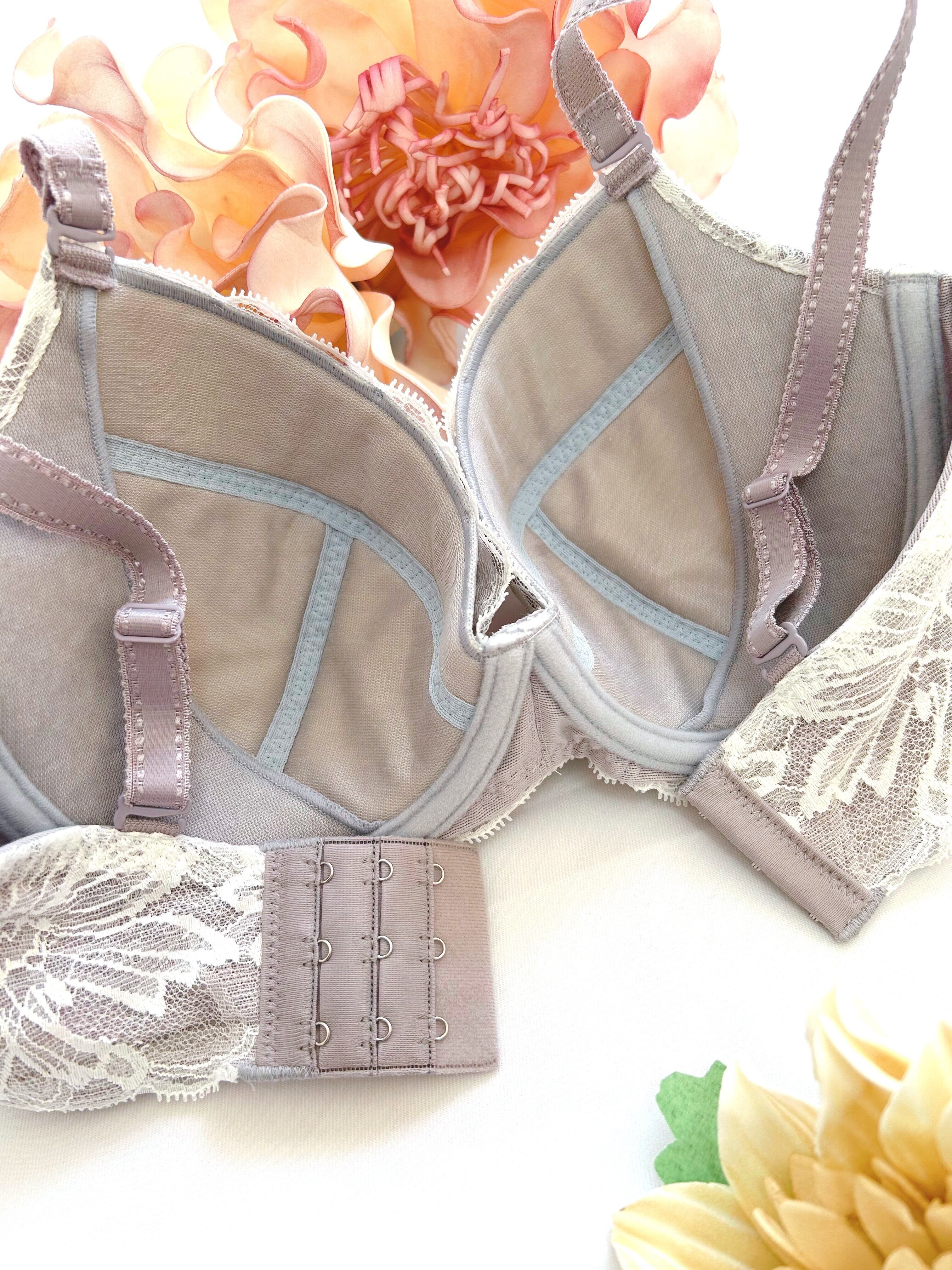 今年のラッキーカラーでもあるガーベラブラジャー ラベンダーは、グレーカラーが混ざった優雅な色合いが魅力的なデザインで、シンプルながらも華やかさを演出します。レースの女王と言われる【リバーレース】を贅沢に使用し、軽やかな素材感が心地よく、普段使いから特別な日まで幅広くご利用いただけます。カップの形状やホック位置、サイドボーンの角度等、細部に配慮し、着用感は【1枚の布でバストを包み込まれている、今までにない感覚】。ゴムフリーならではの、窮屈さ無しでバストを美しくメイクしてくれる、長年の歳月をかけグラマーさんの為に作られた、ブラジャーになります。